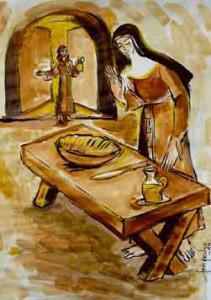O azeite dado por Deus Certo dia, acabou tão completamente o azeite das servas de Cristo, que não havia nem para o tempero das doentes. Dona Clara pegou uma vasilha e, mestra da humildade, lavou-a com as próprias mãos. Colocou-a lá fora, vazia, para que o irmão esmoler a recolhesse, e chamou o frade para ir conseguir o azeite.