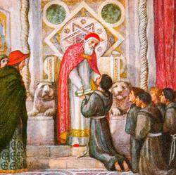 Inocêncio III ficou maravilhado com o propósito de vida daquele grupo e, especialmente, com a figura de Francisco, a clareza de sua opção e a firmeza que demonstrava. Reconheceu nele o homem que há pouco vira em sonho, segurando as colunas da Igreja de Latrão (a igreja-mãe de todas as Igrejas do mundo!), que ameaçava ruir. O Papa reconheceu que era o próprio Deus quem inspirava Francisco a viver radicalmente o Evangelho, trazendo vida nova a toda a Igreja, naquele tempo tão distanciada dos ensinamentos de Cristo! Por isso deu a seu modo de viver o Evangelho a aprovação oficial da Igreja. Autorizou Francisco e seus seguidores a pregar o Evangelho nas igrejas e fora delas e os despediu com sua bênção.